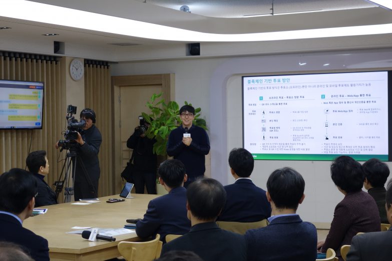 블로코 김원범 대표는 “블록체인 스마트컨트랙트 기술을 이용하여 온라인 투표를 한다면 중앙 관리 기관을 유지하는 비용이나 투표 결과를 얻는 데까지 걸리는 시간이 크게 절약될 수 있을 것이다” 라며 “투표 결과, 투표 프로세스 등의 데이터가 위/변조, 물리적인 해킹 공격이 불가능한 블록체인 상에 등록이 되므로 높은 보안성과 신뢰도를 가질 수 있다”고 말했다.