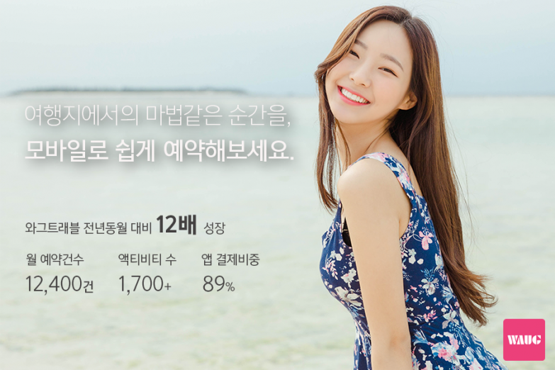 와그트래블이 서비스하고 있는 와그(WAUG)앱은 그 동안 항공, 호텔에 비해 복잡했던 액티비티 예약 프로세스를 혁신적으로 단축한 서비스로 언제, 어디서든 편하게 앱(App)으로 여행지에서 즐길 다양한 활동을 예약할 수 있다는 점이 매력적이다.