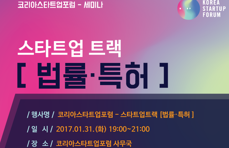 코리아스타트업포럼이 ‘스타트업 트랙’  법률,특허 세미나를 선릉역 코리아스타트업포럼 사무국에서 31일(화) 오후 7시에 개최한다.