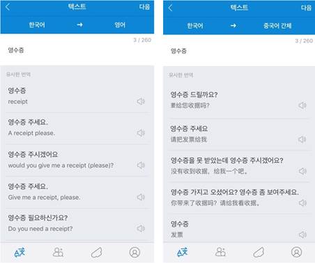 간단한 단어 하나만 입력해도 해당 단어와 함께 활용되는 빈도가 높은 문장이 결과창에 함께 제공되어, 사용자는 원하는 번역 결과를 쉽게 발견하고 실생활에 활용할 수 있다. 뿐만 아니라 모든 번역 결과는 정확한 발음과 함께 제공되어 해외 여행시를 비롯, 외국인과의 의사소통에 유용하게 쓰일 수 있다.