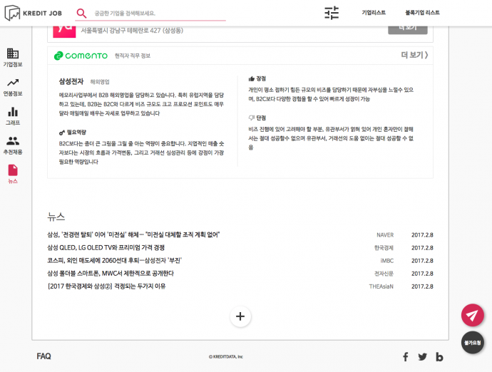 코멘토의 이재성 대표는 “코멘토가 제공하는 정보는 정량적 데이터로 크레딧잡이 제공하는 연봉 정보 및 재직자 수와 같은 정량 정보에 더해서 취업준비생이 보다 풍성한 정보를 크레딧잡을 통해 확인할 수 있게 됐다”고 밝혔다.