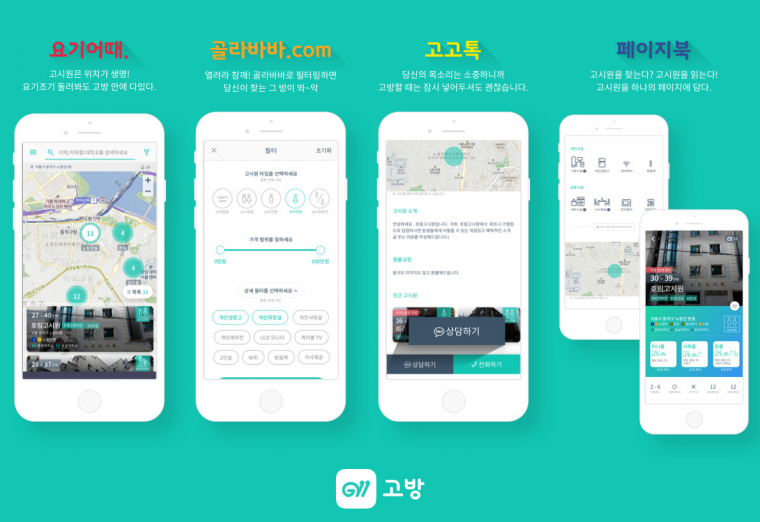 이제 현실적인 답을 찾을 차례다. ‘고시원 찾을 땐 고방’이란 슬로건을 내세운 고방이란 앱 서비스다. 오픈베타 서비스를 시작으로 전국 1만 3000여 개의 고시원 정보를 빼곡히 담았다.
