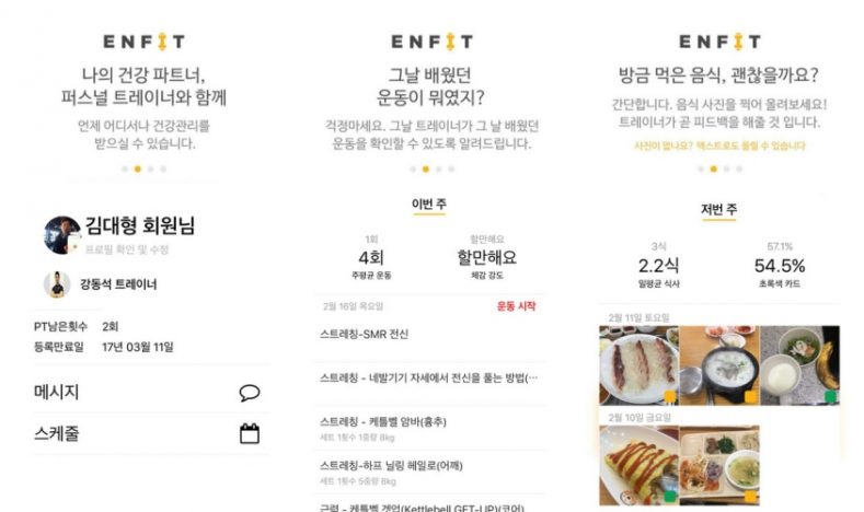 퍼스널 트레이닝 서비스 엔핏은 운동 효과로 곧장 이어지는 식단 관리를 비롯해 운동, 체형 보고서를 한번에 모아볼 수 있는 운동 관련 앱이다. 또한 이런 정보를 직접 퍼스널 트레이너가 회원 관리 목적으로 활용할 수 있기 때문에 피트니스 클럽 밖에 있더라도 꾸준히 관리가 가능하다.