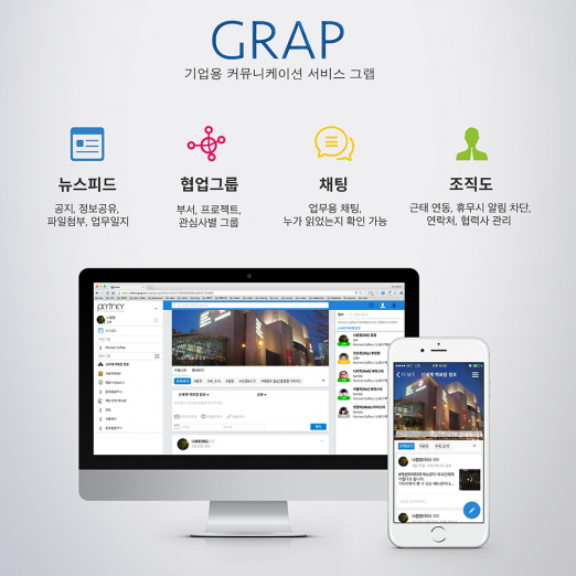 파트너는 사내 이메일이나 사내 메신저로는 업무별로 정보 정리 및 공유가 어렵고, 정보 유출 사고가 발생하는 등 불편함이 많다는 것에 착안, 지난해 7월 신세계아이앤씨와 협력해 메신저와 SNS 기능이 통합된 업무용 협업툴인 그랩을 출시했다.