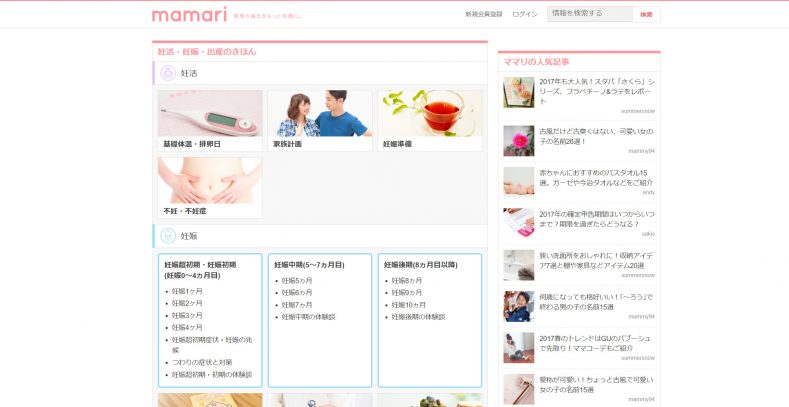 코네히토마마리는 임신과 육아, 출산 관련 소식을 전하는 미디어다. 커넥트와 히토(사람), 마마(엄마)를 합친 명칭이다. 육아 미디어+커뮤니티라고 봐야 할 것이다. 따로 마마리Q(MamariQ)라는 앱 서비스를 함께 제공한다. 일본에서 높은 PV를 보이는 미디어는 별도 서비스를 운영하는 것이 특징이기도 하다.