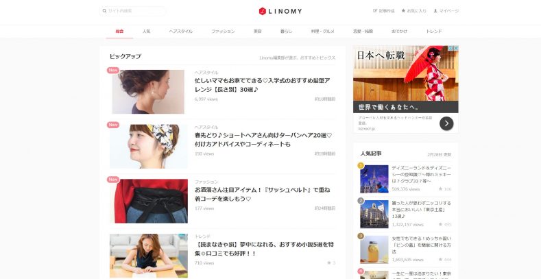 리노미는 쿠마르(Kimar)가 서비스하는 여성향 미디어다. 시급, 월급제 프리랜서 에디터를 상시 모집하고 누구나 글을 작성하여 기고 신청을 할 수 있는 점이 특징이다. 기고문 심사를 통해 정식 에디터로 승격될 수 있다.