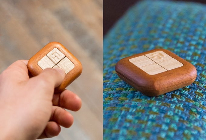 턴터치는 나무 재질로 만든 버튼 4개로 이뤄져 있는 스마트 컨트롤러다. 와이파이나 블루투스 같은 무선 방식을 지원하는 가전 제품이라면 이들 버튼을 이용해 자유롭게 원격 제어할 수 있다.