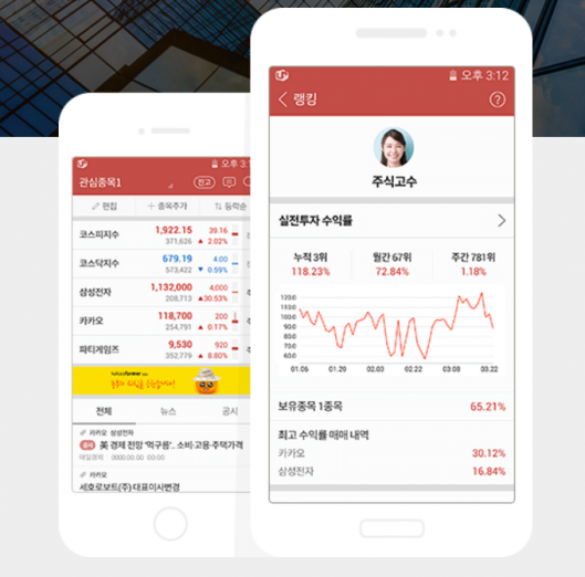 카카오증권은 소셜 트레이딩 서비스로 주식 정보 외에 실거래까지 한 눈에 확인할 수 있는 증권 애플리케이션. 미래에셋과 키움, 한국투자증권 등 국내 주요 증권사 10개사와 제휴를 맺었고 기존 증권사 거래수수료 외에 따로 추가 수수료를 지불할 필요가 없다. 누적 거래액도 15조원을 넘어선 상태다. 카카오증권 모바일 서비스 관련 내용은 이곳에서 확인할 수 있다.