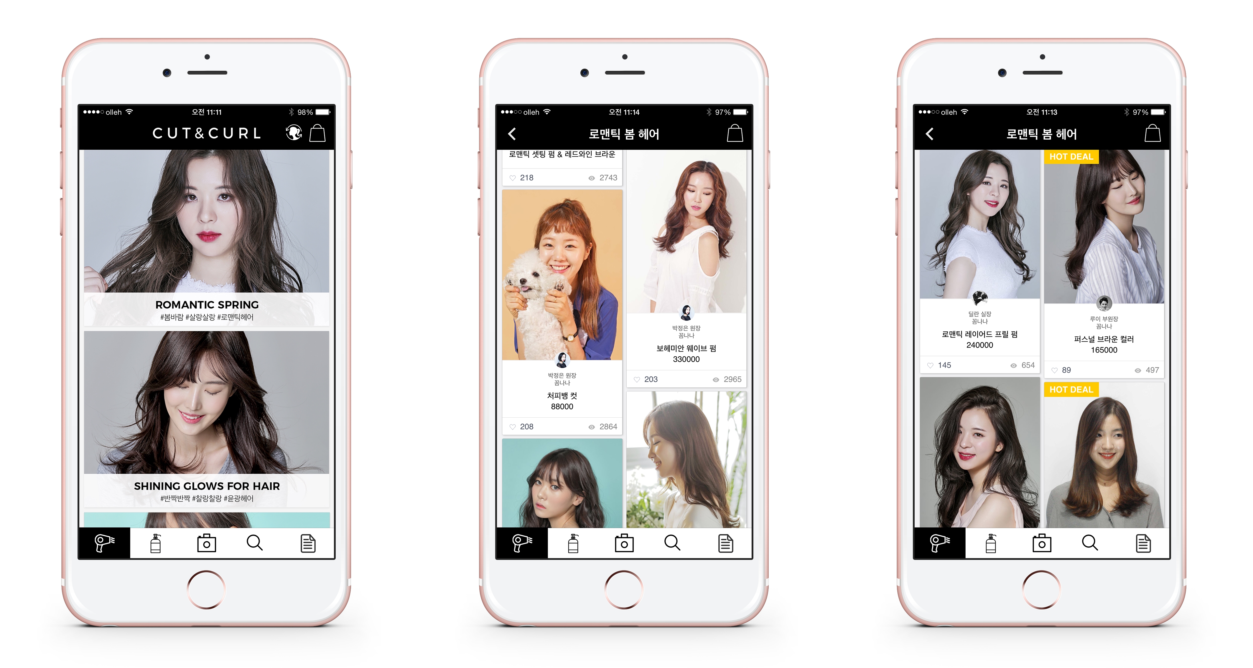 컷앤컬은 주제, 범주에 따라 머리스타일을 제시하고 원하는 디자이너에게 시술을 받을 수 있도록 연계하는 머리스타일 큐레이션 O2O 서비스다. 컷앤컬 애플리케이션은 시술 형태와 가격 정보는 물론 최신 유행에 따른 머리스타일을 제공한다. 공유 가르마 펌, 고준희 단발 등 원하는 스타일을 검색할 수도 있다.