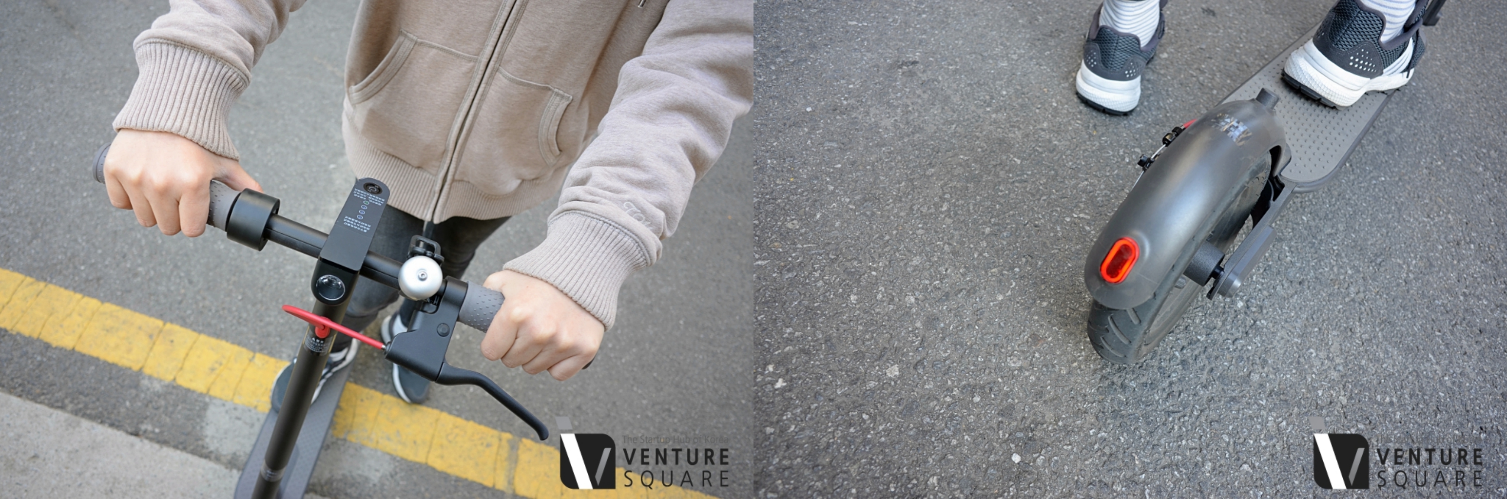 몇가지 단점이 보인다. 먼저 속도를 제어하는 스로틀의 감도가 예민하지 않다는 점이다. 거의 온/오프 수준이다. 물론 이 부분은 초보자의 경우 속도 조절을 하기 훨씬 수월하기에 호불호가 갈릴 수 있는 부분이다. 브레이크의 경우 앞/뒤 바퀴가 연동되고 뒤쪽엔 디스크 방식을 썼다. 4m 정도의 제동거리를 지녔다고 제조사는 밝히고 있지만 이것 또한 탑승자의 체격이나 경사도에 따라 약간의 차이가 있음을 염두해야 한다.