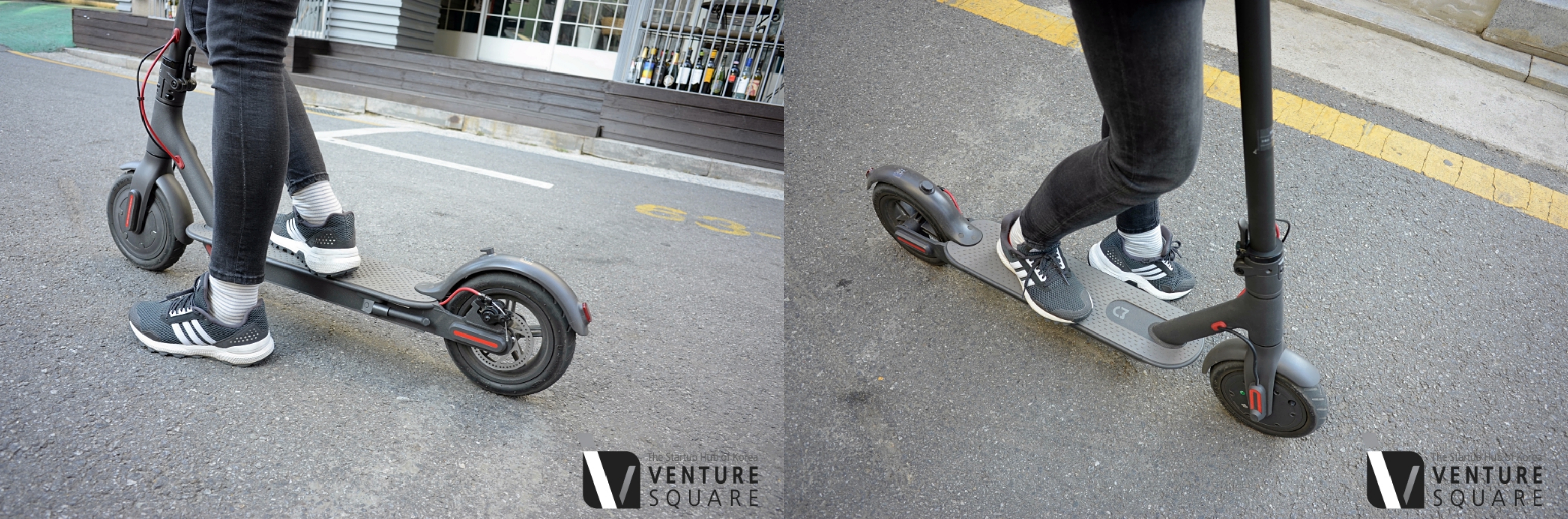 주행 품질에 대한 아쉬움도 있다. 8.5인치 바퀴는 제법 노면 충격을 고스란히 탑승자에게 전달한다. 자전거 바퀴처럼 안에 튜브가 들어 있는 방식임에도 인도와 도보 사이 야트막한 연석을 오를 때도 제법 큰 충격을 받는다. 충격보다 더 큰 문제는 이때 핸들까지 영향을 받아 조향이 틀어져 의도하지 않은 방향으로 달릴 수 있다 점이다. 물론 천천히 다릴 때는 문제가 없다. 테스트를 위해 무리한 속도로 다니다 발견한 문제임을 미리 밝힌다. 그리고 펑크도 난다. 이 사실을 거의 모르고 있더라. 미리 알맞는 튜브를 사두는 것이 좋다. 충전 단자도 고무 커버를 달았는데 충전 플러그를 빼고 그대로 달리는 경우가 적지 않다. 스프링이 달린 커버로 바꾸면 간단히 해결될 일이지만 이것 역시 원가절감의 흔적이다.