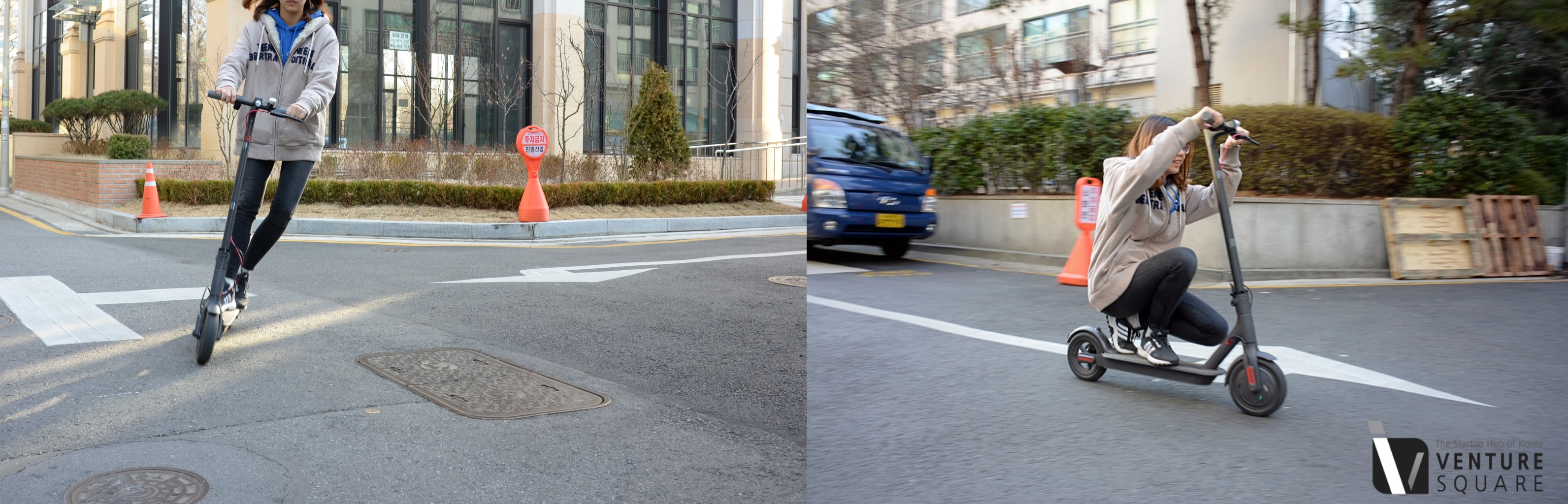 물론 걱정과 달리 서울 시내 언덕은 문제 없이 올라간다. 경사도로 표시하면 약 5% 내외다. 물론 이것도 탑승자의 신체 조건에 따라 조금은 속도 편차가 있을 수 있다. 참고로 대한민국 평균 체형이라 자부(?)하는 에디터는 언덕에서 일반적인 걷기 속도로 올라갔다. 상대적으로 가벼운 여성이 훨씬 수월하게 올라가는 건 당연하다. 멈췄다가 재가속을 할 경우는 평지와 달리 확연하게 차이가 난다. 배터리 소모도 많고 속도 역시 그리 빠르지 않다. 일반 킥보드를 탈 때처럼 출발하면서 땅을 딛을 때 힘껏 차는 스킬이 필요하다.