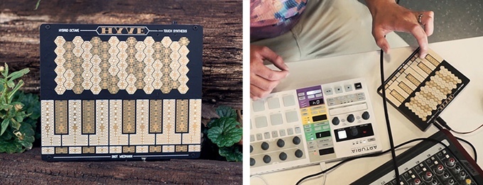 하이브(Hyve)는 마치 1970년대 나온 소형 전자 악기인 스타일로폰(Stylophone)을 닮은 듯한 휴대용 터치 신시사이저. 신시사이저지만 마치 예술 같은 형태로 생긴 터치스크린을 특징으로 삼고 있다. 외형 뿐 아니라 촉감 등에 따라 독특한 소리를 내는 건 물론.