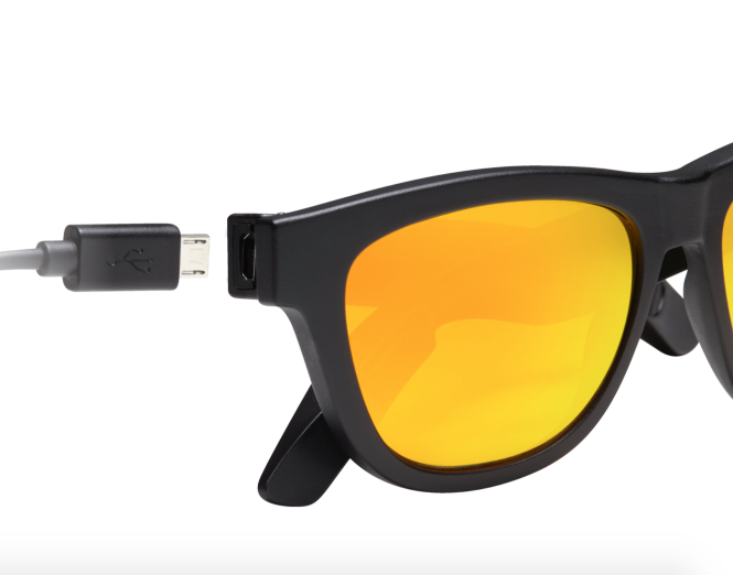 음악 재생 시간은 4시간. 조금 아쉽지만 선글라스 무게가 45g임을 감안했을 때 충분히 이해할 수 있는 부분이다. 참고로 레이밴 웨이페어러는 50g 내외, LG 톤플러스는 60g 정도다. 선글라스 왼쪽 다리에는 300mAh짜리 리튬 폴리머가 들어있다. 연속 대기 시간은 100시간, 통화 가능 시간은 5시간이다. 충전은 선글라스 다리 힌지 사이에 자리잡은 마이크로 USB 포트를 통해 1시간 정도면 끝난다.