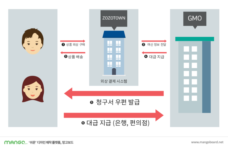 또한, 실제 결제 과정에 별도 금융기관을 활용하는 일종의 대리결제 시스템임에도 외상이라는 이름으로 사용자의 이해를 방해하고 있다. 조금 더 살펴보면 조조타운이 외상이라 부르는 이 결제 시스템은 외상도 후불제라 부르기도 조금 어려운 구조라는 것을 알 수 있다. 소비자가 제품을 외상으로 구매하면 해당 정보를 제휴업체인 ‘GMO 페이먼트’ 결제사로 넘기고 해당 기관으로부터 제품비를 받는다. 이후 GMO 페이먼트가 소비자에게 청구서를 보내는 형식이다. 이때 수수료가 발생하며 은행을 통한 송금일 경우 해당 수수료도 소비자 부담이다. 일종의 채권 매매 방식이다.