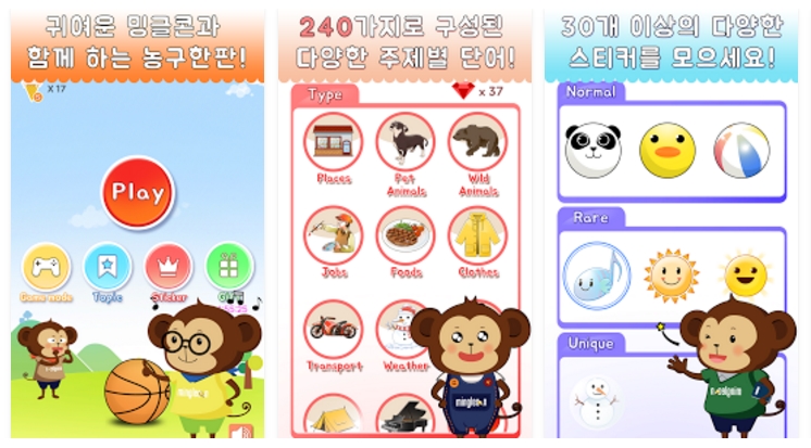 밍글콘! 농구 영단어240은 밍글콘이 출시한 게임 앱이다. 이 앱은 단순 게임이 아니다. 어린이를 대상으로 영어 읽기와 말하기 능력을 끌어올려줄 수 있도록 게이미피케이션(Gamification), 게임 요소를 접목한 것.