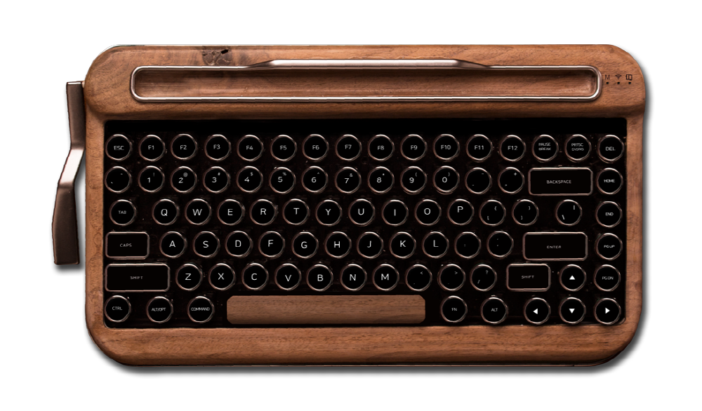 물론 이 제품은 복고풍 디자인을 따랐지만 FN이나 PgUp 등 기존 타자기에는 없던 키도 배치, 이용할 수 있도록 했다. 본체 위쪽에는 상단 스탠드에 스마트폰이나 태블릿 같은 기기를 세워놓고 쓸 수 있는 건 물론. 그런 다음 무선 연동을 하면 마치 반세기 전 작가가 된 것 같은 분위기를 만끽할 수 있다.