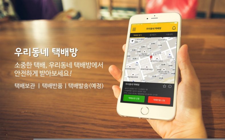 우리동네 택배방은 택배의 보관, 반품, 발송(향후 서비스 추가 예정) 등의 택배 업무를 집이나 회사 근처의 제휴 상점(택배방)을 통해 대신 처리할 수 있는 서비스다. 고객은 앱을 통해 직접 물품을 수령하기 어려운 집이나 회사 대신 택배방을 선택하고 배송지에 선택한 택배방 주소를 입력하면 된다. 마치 해외구매를 할 때 배대지를 이용하는 것과 같은 방식이다. 이후 택배가 도착하면 제휴 상점을 찾아 배달된 물품을 수령하면 된다.