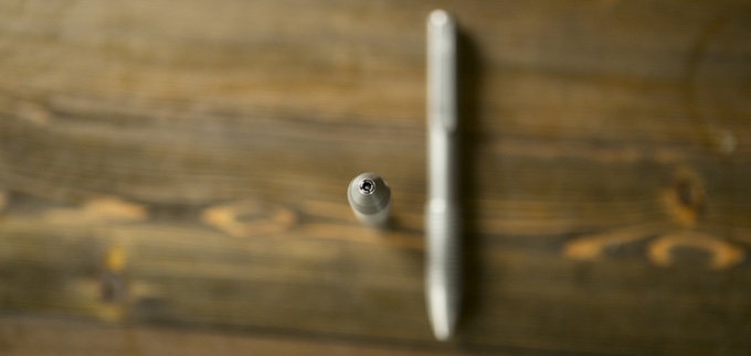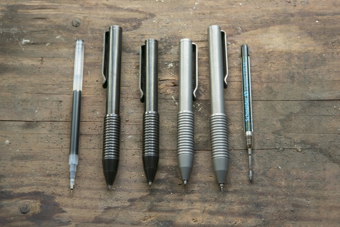 이 제품은 티타늄 재질로 만들었다. 매일 갖고 다니는 EDC(everyday carry)를 컨셉트로 내건 만큼 튼실한 재질로 만든 것. 물론 가장 큰 장점은 80여 개에 이르는 리필 잉크를 끼워서 쓸 수 있다는 것이다. 펜촉 개구부를 자동 조정할 수 있고 크기를 원하는 대로 길거나 짧게 조절할 수도 있다. 외형 변화 없이 원활하게 이용할 수 있게 해주는 것. 후드 스타일 볼펜 리필과 표준 롤러, 볼, 리필 모두 맞게 디자인했다.