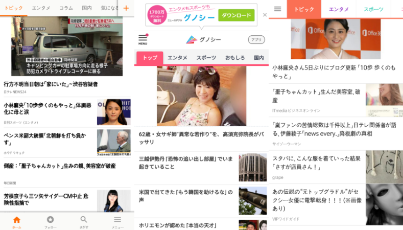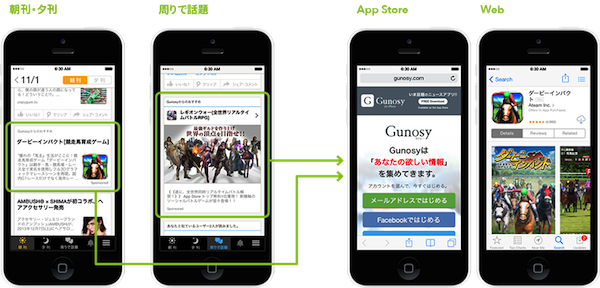 피키캐스트와 구노시는 콘텐츠 큐레이팅과 네이티브 광고라는 점에서 상당히 유사하다. 페이스북을 시작으로 빠르게 사용자를 늘리며 성장한 피키캐스트는 2015년, 광고를 통한 월 매출이 3억 수준이라 밝힌 바 있고 2017년 누적 다운로드 수는 1,700만 수준이다.
