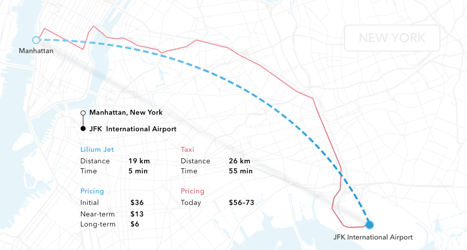 릴리움 공동 창업자 겸 CEO인 다니엘 위건드(Daniel Wiegand)는 “릴리움 제트는 수직 이착륙과 수평 비행이 가능한 세계 첫 전동 비행기”라면서 “누구나 언제든 손쉽게 타고 날 수 있는 게 목표”라고 밝혔다. 개인용 VTOL기를 목표로 한다는 것. 앞서 밝혔듯 릴리움 제트는 수직 이착륙을 할 수 있어 긴 활주로가 필요 없고 전기 동력을 써서 소음 문제도 없다. 덕분에 빌딩 옥상 같은 곳에서 이착륙을 할 수 있다. 뉴욕 맨해튼에서 JFK공항까지 55분 걸리던 거리를 릴리움 제트로 가면 5분에 이동할 수 있다.