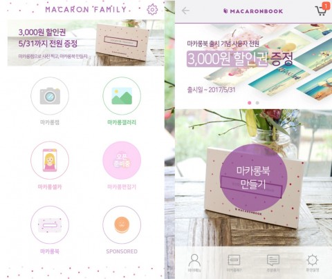 마카롱북은 스마트폰 속 사진을 인화, 책 1권으로 묶어주는 서비스다. 평소 폰에만 간직하던 갤러리 사진을 실제 사진 앨범으로 탈바꿈시켜주는 것.