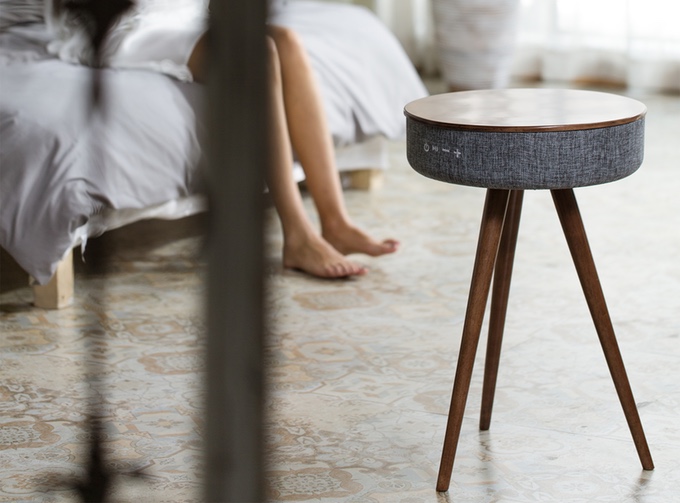 멜로우(Mellow)는 블루투스 스피커를 삼킨 커피 테이블이다. 소파에서 커피를 마시면서 책을 읽을 때 잘 어울리는 제품이다. 크기는 400×600mm로 콤팩트하지만 세련된 디자인을 갖추고 있다. 디자인은 자연에서 영감을 얻은 것이어서 어떤 가구와도 궁합이 잘 맞는 세련되지만 간결한 디자인을 갖췄다.