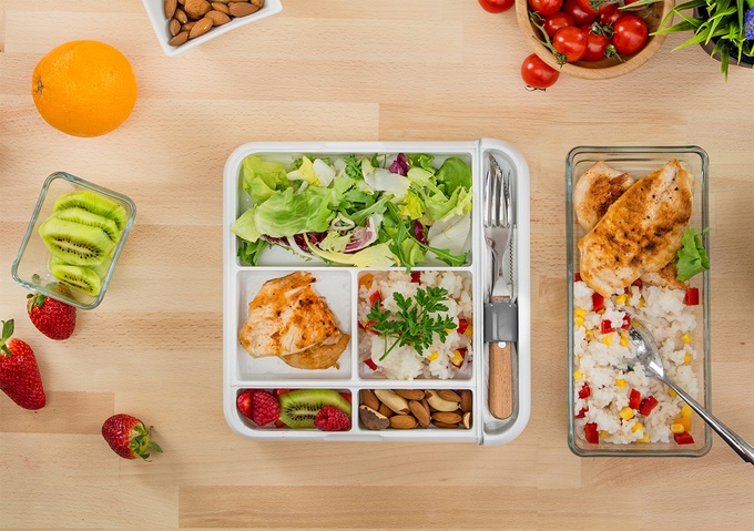 도시락을 매번 준비하는 주부라면 식단을 짜서 야채와 단백질, 탄수화물 같은 것까지 미리 감안하는 건 쉽지 않은 일이다. 피트보의 가장 큰 특징은 분할형이라는 것이다. 2분의 1은 야채, 4분의 1 2개는 각각 단백질과 탄수화질, 미니 스낵을 담을 수 있는 2개로 나뉘어져 있는 것. 이런 분리 방법대로 요리를 도시락에 넣기만 하면 자연스럽게 건강을 챙길 수 있다는 것이다.