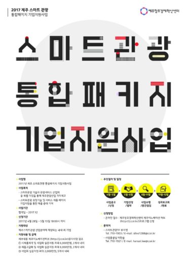 <2017 제주 스마트 관광 통합 패키지 기업지원사업 >은 스마트 관광 관련기술과 관광서비스 산업 융복합화 지원사업으로 제주지역의 스마트 관광 산업분야에 해당한다면 국내 ·외 기업 모두 공모 가능하다 .