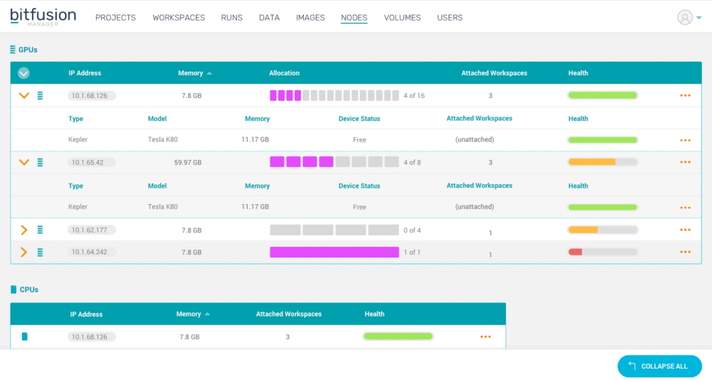 물론 중요한 건 비트퓨전 플렉스가 모델링을 쉽게 하는데 반드시 필요한 건 아니라는 것이다. 텐서플로우(TensorFlow)나 토치(Torch), 카페(Caffe) 혹은 이와 비슷한 어떤 툴이라도 관계없이 개발자가 선택한 프레임워크를 설정하기 위한 앱스토어 같은 경험을 제공한다. 하지만 비트퓨전 플렉스의 강점은 애플리케이션을 생성하고 실행하는 데 필요한 인프라를 관리하는 데 있다. 비트퓨전 플렉스는 프로세스 관리를 위한 웹 기반 인터페이스 뿐 아니라 개발 단계에서 로컬 랩톱에 원격으로 GPU를 연결할 수 있는 커맨드 라인 인터페이스도 제공한다.