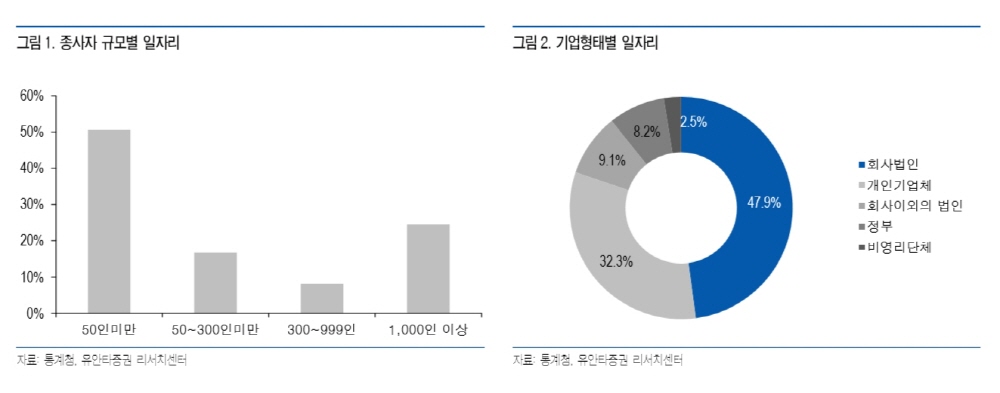 창조경제혁신센터의 국민 아이디어 창업 허브 전환 역시 이 같은 전략의 일환이 될 것으로 보인다. 실제로 유안타증권이 발표한 ‘문재인 대통령 당선자의 공약 분석 보고서’에 따르면 일자리 형태는 법인이 47.9%로 가장 높다. 일자리 대다수가 법인인 것. 하지만 종사자 규모를 따져보면 50인 미만이 전체 절반이 넘는 50.6%다. 따라서 양질의 일자리 창출을 위해선 스타트업과 벤처, 중소기업에 대한 정책 지원은 필연적이라고 할 수 있다.