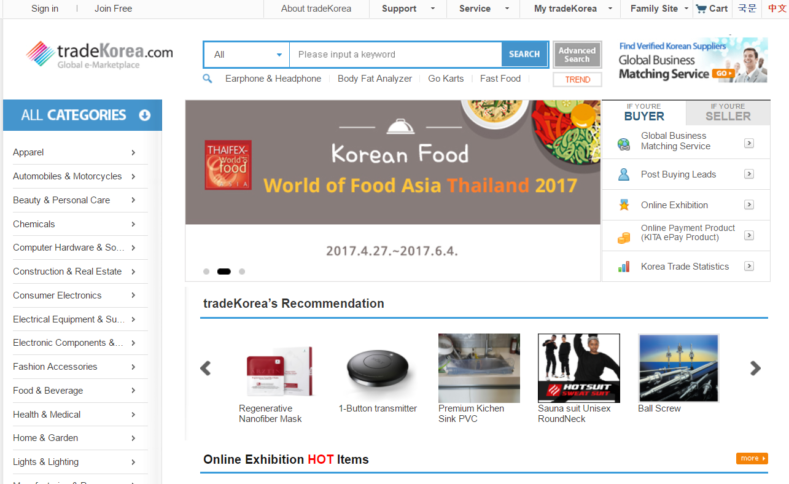 무역협회는 이를 방지하기 위해 전 세계 바이어와 셀러가 온라인에서 만날 수 있는 e마켓플레이스 트레이드코리아(Tradekorea)를 운영하고 있다. 트레이드코리아는 국내 기업 수출을 지원하고 해외 홍보를 돕기 위해 영문, 중문으로 운영되며 우수 회원을 대상으로 온라인 전시관 홍보, 영문 e뉴스레터 발송 등 홍보 서비스도 제공한다. 연간 650만 명이 방문하며 방문자 중 90%가 해외에서 발생하고 있다.