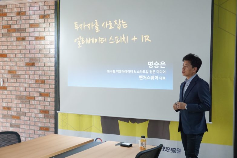 이날 강연을 맡은 한국형 엑셀러레이터이자 스타트업 전문 미디어 벤처스퀘어의 명승은 대표는 ‘투자자를 사로잡는 엘리베이터 스피치 + IR’이란 주제로 투자자 입장에서 기업을 바라보는 시각과 투자 환경, 구체적 사례를 통한 피칭 노하우 등을 공유했다.