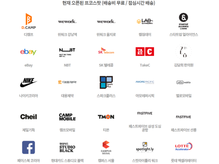 픽업 장소는 역세권에 위치한 코워킹 스페이스, 피트니스센터, 까페 등 총 25곳이며 올 하반기까지 50곳으로 확대된다. 회사 밀집 지역의 주요 기업을 프코스팟으로 지정함으로써 직장인들이 생활 반경안에서 간편하게 웰빙푸드를 즐길 수 있도록 했다. 배송은 현재 점심에만 제한적으로 운영하고 있지만 올 상반기 내 배송시간을 오후까지 확대하고 외부 배송 업체와 협력해 선주문이 아닌 실시간 배송도 진행할 계획이다.