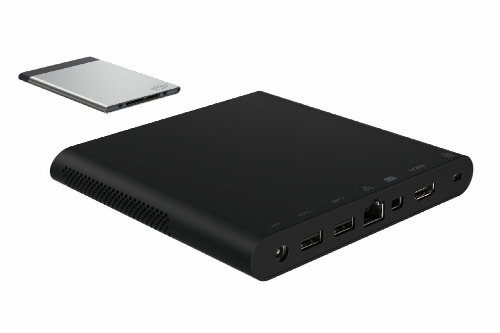 인텔은 컴퓨텍스 기간 중 컴퓨트카드를 탑재한 소형 PC도 발표했다. 측면에 컴퓨트카드를 끼울 수 있는 슬롯을 갖췄고 USB 단자, 전원 버튼, 반대편에는 USB와 랜, 미니 디스플레이 포트와 HDMI 등을 갖췄다. 컴퓨트카드가 단순 PC 역할 뿐 아니라 다양한 기기에 내장될 수 있다는 걸 보여주는 것이다. 예를 들어 TV나 모니터, 냉장고 등 컴퓨팅을 필요로 하는 모든 분야에 간편하게 집어넣을 수 있다는 것이다. 이 제품은 올 8월 출시될 예정이라고 한다.
