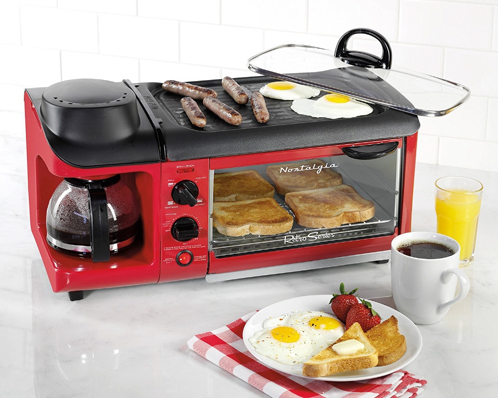 브랙퍼스트 스테이션(Breakfast Station)은 커피 메이커와 토스터, 그릴을 한데 묶은 3in1 올인원 제품이다. 바쁜 아침 식사 시간, 커피와 토스트, 계란 프라이와 소시지까지 모두 한꺼번에 조리할 수 있게 해주는 제품인 것. 효율적인 아침 식사 조리를 돕는다.