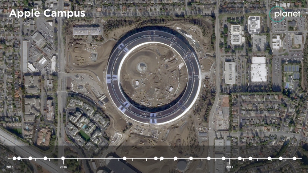 위성사진 제공 사업을 하고 있는 플래닛이 이런 애플파크의 지난 2년간 건설 상황을 18초짜리 위성사진에 담았다. 영상은 건설이 시작된 2015년 9월 무렵 시작한다. 물론 애플은 건설 이전인 2013년부터 신사옥에 대한 내용을 공개했다. 완성된 애플파크 모습은 물론 건설 전 단계에선 애플 캠퍼스 2(Apple Campus 2)라고 불렀다. 정식 명칭은 애플파크다.