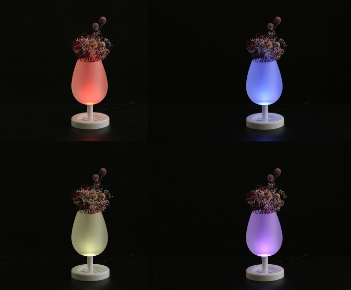 와인잔 상단에는 자신이 원하는 아로마 오일을 넣어 향기를 즐기고, 우드 볼이나 드라이 플라워 등을 담아 개인 취향에 맞춘 인테리어 소품으로 활용할 수 있다. 램프는 하단 버튼을 통해 조절할 수 있는데, 흰색과 붉은색, 색상을 천천히 변화시키는 루프 모드등 다양한 재주가 마련되어 있다. 또한, 잔 아래쪽에는 작은 소품을 보관할 수 있는 수납공간이 마련되어 있어 액세서리를 보관할 수 있도록 설계되었다.