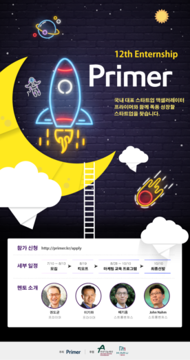◇ 프라이머, 엔턴십 12기 모집=프라이머가 오늘부터 엔턴십 12기를 모집한다. 엔턴십은 프라이머가 직접 운영하는 예비, 초기 창업자 대상 창업실습 프로그램으로 참가자는 2달간 온/오프라인 과제 수행을 통해 자신의 사업 아이디어를 검증하는 과정을 거치게 된다. 이번 12기부터는 1차 선발된 팀을 대상으로 마케팅 교육 프로그램을 집중적으로 운영할 계획이다. 이번 12기 엔턴십에는 권도균, 이기하(Sazze 창업자), 배기홍(스트롱벤처스 공동대표), 존남(스트롱벤처스 공동대표) 등 선배 창업가가 멘토로 참가해서 사업검증과 실행 방향에 대해 조언할 예정이다. 프라이머 12기 엔턴십은 프라이머 웹사이트에서 참가신청 가능하다.