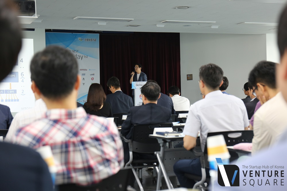 데모데이 참가팀 심사는 VC 심사위원이 가상 금액 1억 원을 투자하는 모의투자방식으로 진행됐다. 모듈선택형 loT 솔루션을 제공하는 빛컨이 총 투자액 6억 9,402만원으로 가장 높은 금액을 유치했다. 삼공일은 6억 3,303만원, 펫닥이 5억 8,710만원으로 뒤를 이었다. 모의투자는 실시간청중응답시스템 심플로우를 통해 진행됐다. 데모데이에 참가한 12개팀을 소개한다.