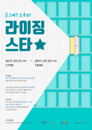 ◇ 네오스프링, 모의크라우드펀딩 대회 개최=네오스프링이 성남산업진흥재단, AVA엔젤클럽과 함께 7월 21일부터 25일까지 5일간 라이징스타-모의크라우드펀딩 대회를 개최한다. 21일 크라우드펀딩을 시작으로 마지막 날인 25일에는 성남창업센터 정글on라운지에서 전문가 강의를 비롯해 현장 IR발표 및 시상식, 현장 추첨행사, 기업과 투자자간 네트워킹이 있을 예정이다. 참가 방법은 네오스프링 홈페이지에 접속해 회원 가입 후 모의투자금 1천만원을 받아 기업당 최대 200만원의 투자가 가능하다.