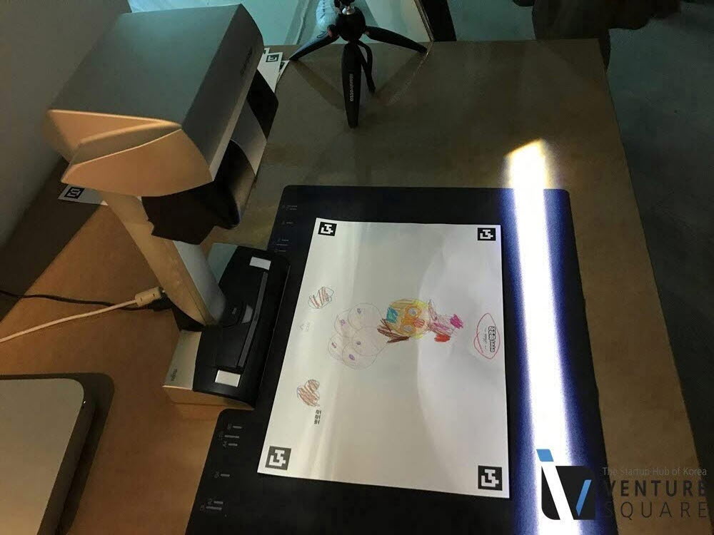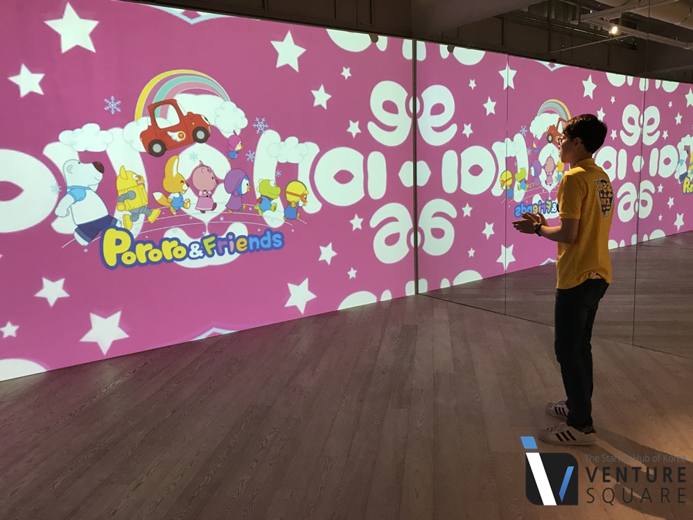 벽면 스크린에 자신이 색칠한 캐릭터가 등장한다. 손으로 만지면 캐릭터를 만지면 캐릭터가 위로 올라가거나 움직인다.