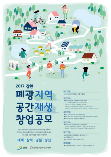 ◇ 강원센터, 공간재생 창업공모전 개최=강원창조경제혁신센터가 다음달 17일까지 ‘2017 강원 폐광지역 공간재생 창업공모’에 참여할 참가자를 모집한다. 태백, 삼척, 영월, 정선 4개 시·군 폐광지역의 유휴공간을 활용한 창업 지원으로 폐광지역 내 창업 분위기를 조성하고 지속 가능한 지역 재생사업을 추진하는 게 이번 공모 사업의 목표다. 강원센터는 선발된 팀에게 공간조성비 최대 5천만 원과 전문가 컨설팅, 홍보·마케팅 등을 지원할 예정이며 지역 유산 및 생활문화 기반 비즈니스 모델의 사업화를 지원하는 지역혁신가 사업 대상으로 추천할 예정이다. 이번 사업은 폐광지역의 방치된 폐가나 빈 상가, 공터, 노후시설 등 유휴공간을 활용해 창업하려는 자를 대상으로 하며 주민등록상 폐광지역 거주자이거나 폐광지역 거주민이 1인 이상 포함된 팀이면 누구나 신청이 가능하다. 공모에 참가를 희망하는 사람은 9월 17일까지 강원센터 홈페이지를 통해 신청할 수 있다.