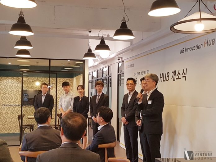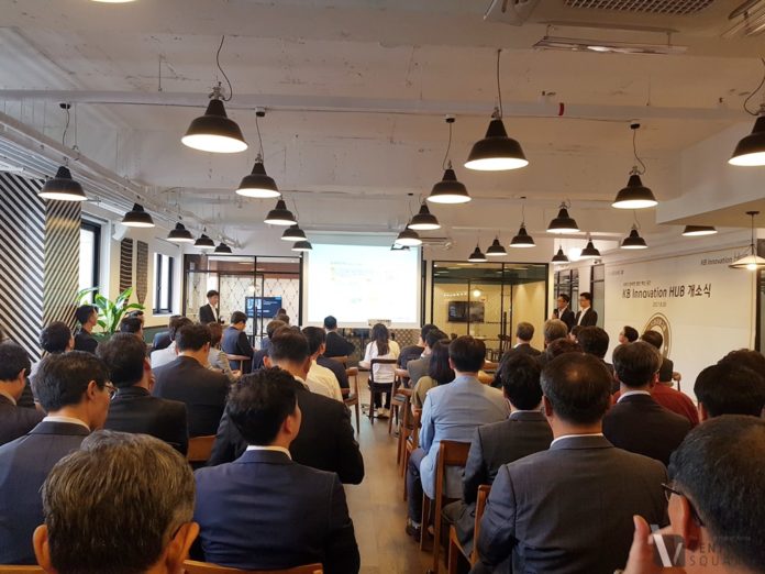 KB 금융그룹이 30일 핀테크 기업 육성 공간인 KB 이노베이션 허브 (Innovation hub)를 확장 이전하고 개소식을 열었다.
