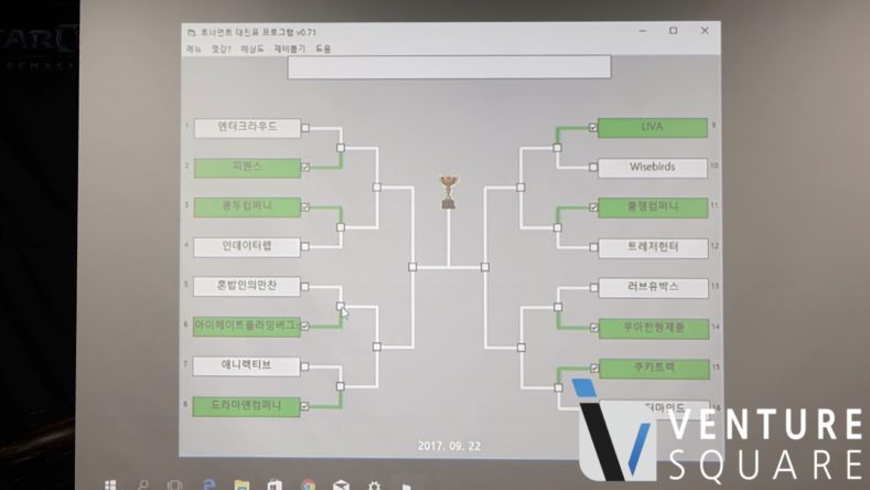 드디어 제1회 벤처스퀘어 게임 리그 64강 A조 경기가 시작됐습니다.