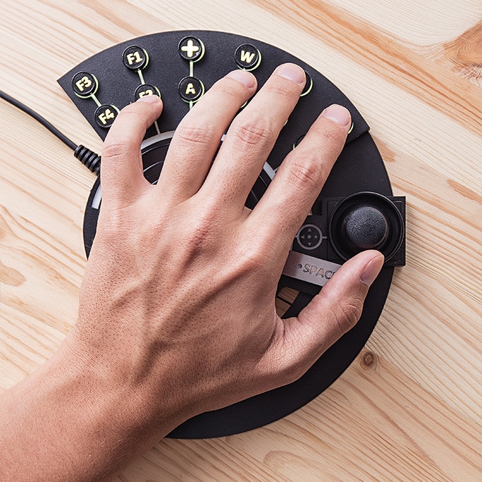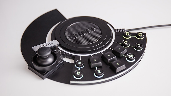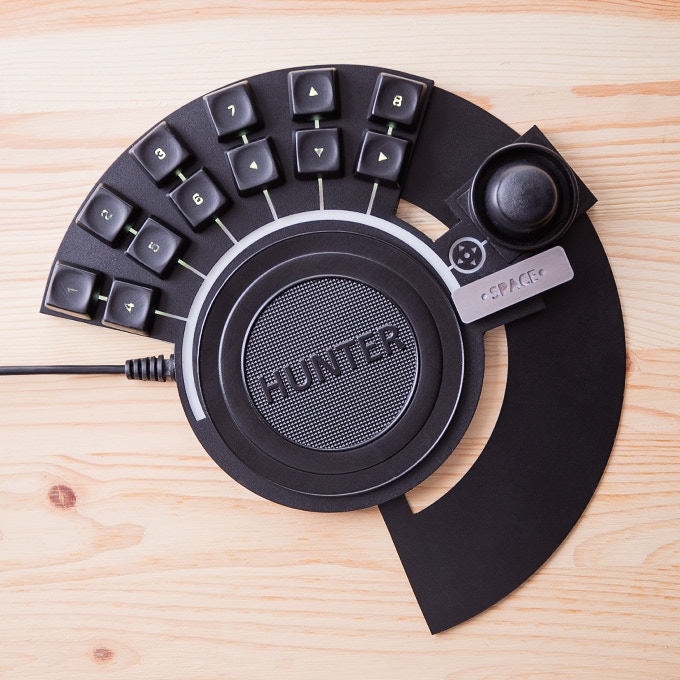 헌터(Hunter)는 게이머를 위한 원형 키보드다. 게임을 즐길 때 정확도를 높이거나 혹은 그림을 그릴 때 디자이너의 작업 효율을 높여주는 역할을 하는 왼손 전용 키보드인 것.