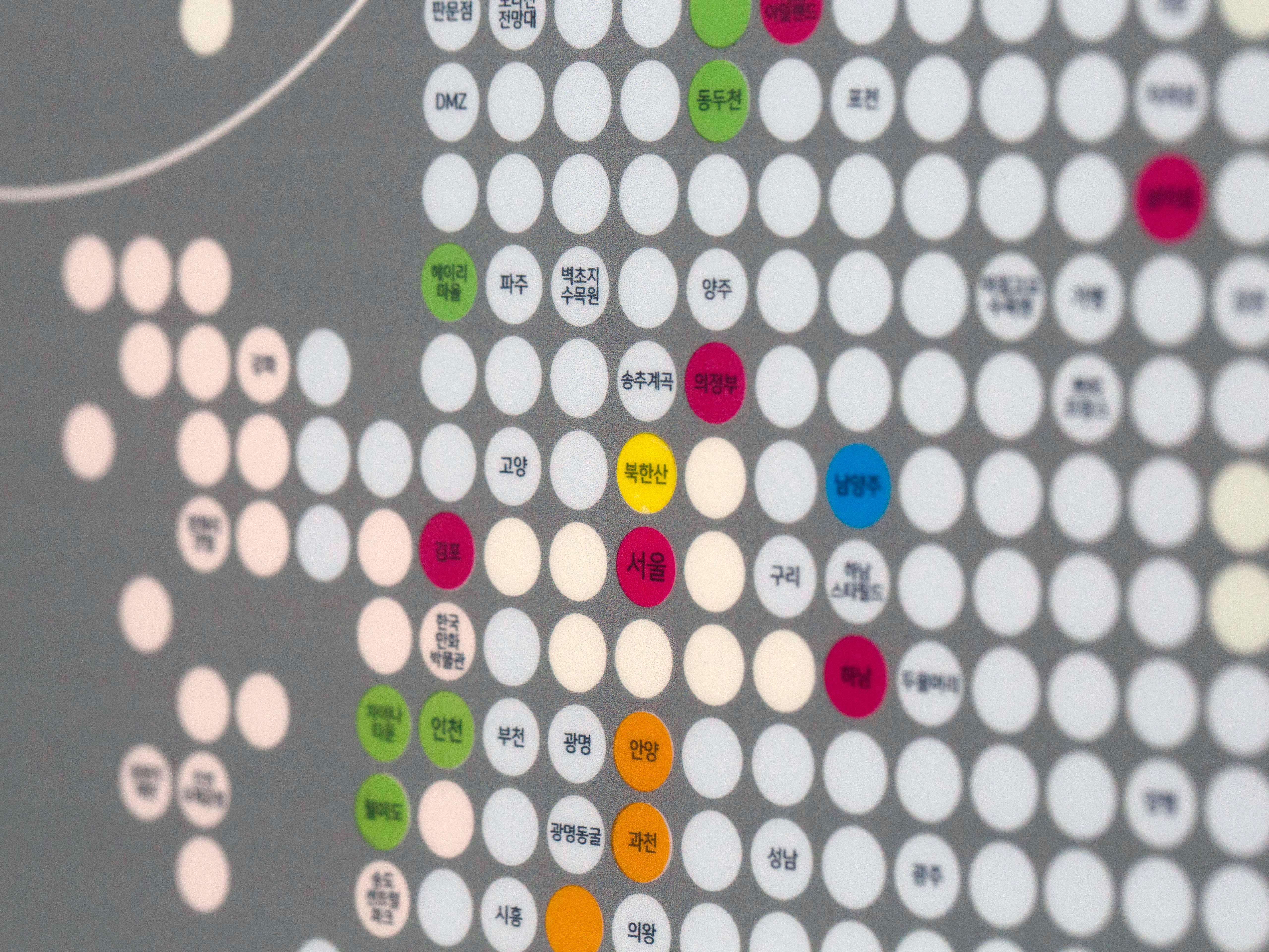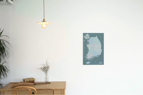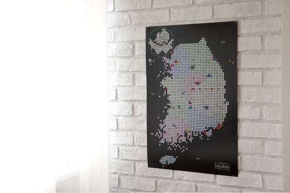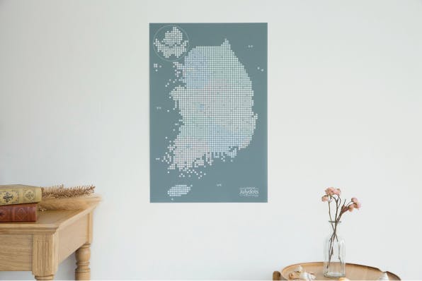 줄라이닷츠 한국지도는 줄라이웍스가 선보인 여행 기록용 도트맵. 이 지도는 우리나라 전체를 도트로 표현하고 있다.