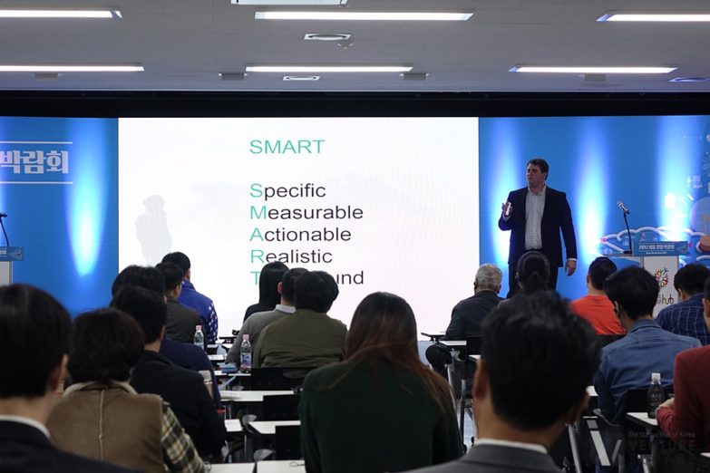 “매일 일(task) 하나를 정하고 끝내라” 아담 플루머(Adam Pluemer) 듀오그룹 대표는 2일 공덕 서울창업허브에서 열린 2017 서울창업박람회 글로벌 세미나에서 이같이 말했다. 그는 “하루를 마치고 자신이 목표로 한 걸 얼마나 달성했는지 매일 확인하라”고 조언했다.