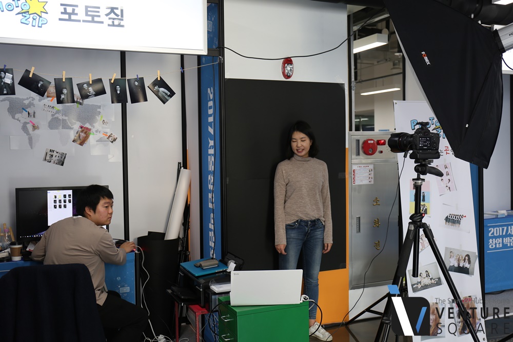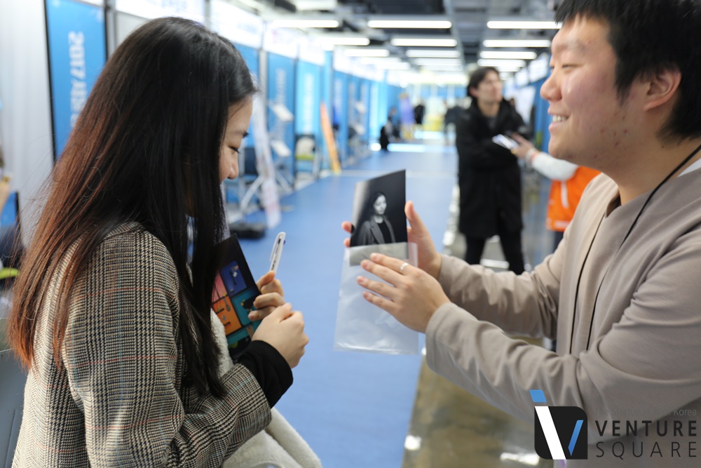 행사기간 동안 문전성시를 이루었던 부스, 포토짚에 도착했습니다. 포토짚은 오프라인 스튜디오와 함께 온라인 보정서비스를 제공하고 있습니다. 사진을 찍어서 업로드하면 한 시간 이내 보정된 사진을 받아볼 수 있습니다. 사진 보정서비스가 보편화되지 않은 인도네시아와 말레이시아 등 동남아시아 국가를 중심으로 서비스를 진행하고 있습니다.