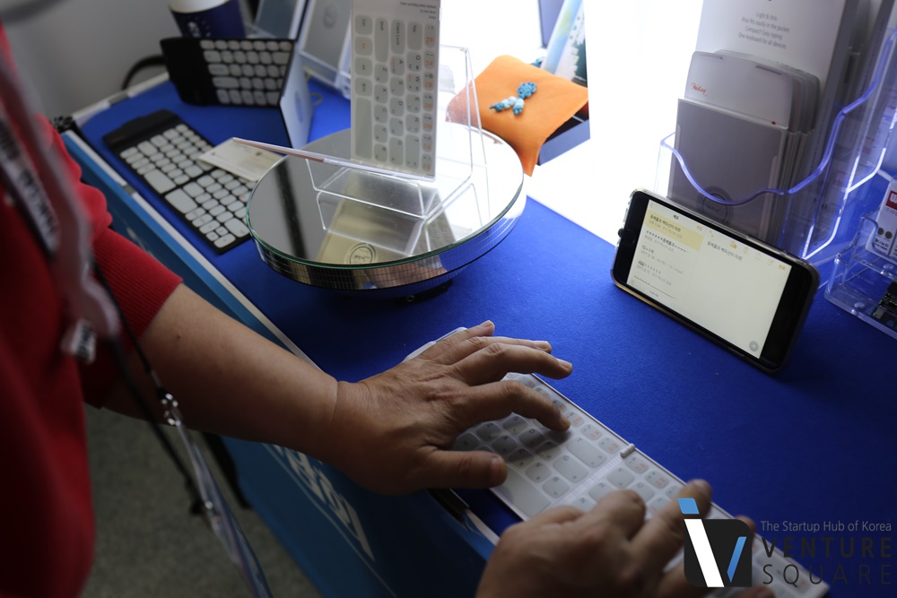 우린은 스마트폰용 키보드 위키와 함께 서울창업박람회를 찾았습니다. 접이식 키보드 위키는 반으로 접으면 스마트폰보다 작은 크기로 분해 주머니 속에 쏙 들어간답니다.